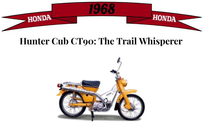 Built for rugged terrain and off-road adventures, the Hunter Cub CT90 was the bike you took when you wanted to disappear into the woods and return with a story, a squirrel friend, and possibly a new tattoo.