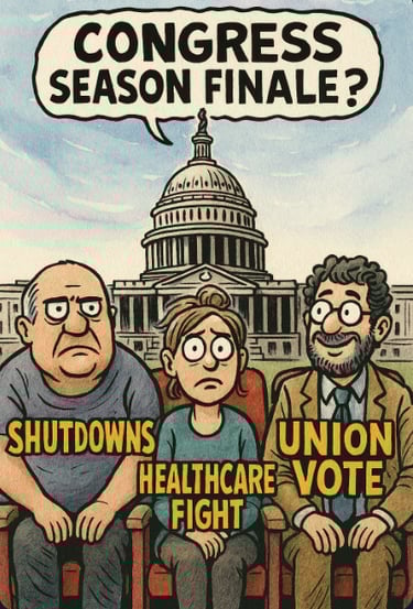 Buckle Up: the next few weeks could be a rollercoaster of brinkmanship, policy fights, and maybe even another round of “will they, won’t they” shutdown drama. At least the union rights vote proves that compromise isn’t extinct — just endangered.