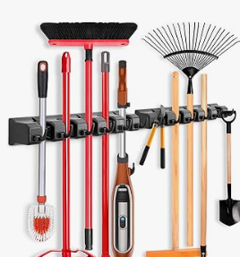 This wall‑mounted organizer keeps mops, brooms, dusters, and tools off the floor and neatly in place. It’s one of those “why didn’t I do this sooner” upgrades.